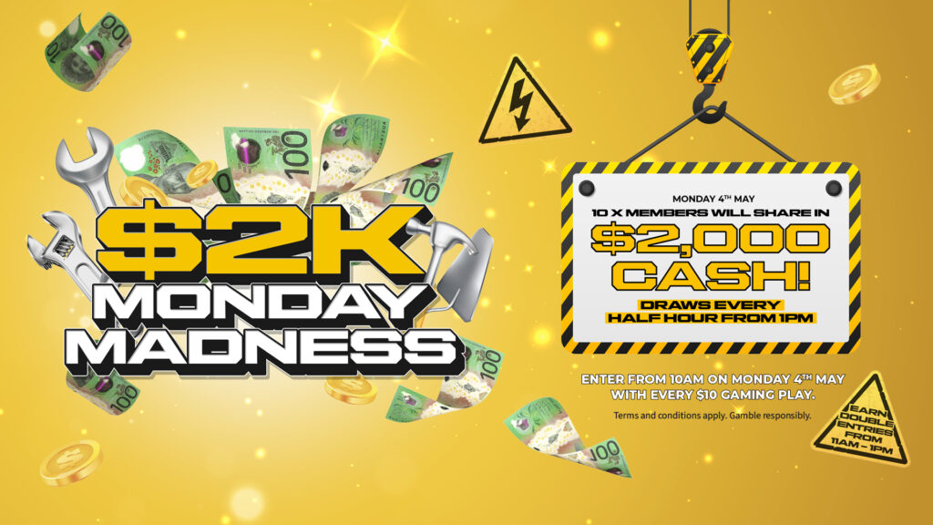 Join us on Monday 4th May 2026 for 2K Monday Madness, where members have the chance to win a share of $2,000 CASH!