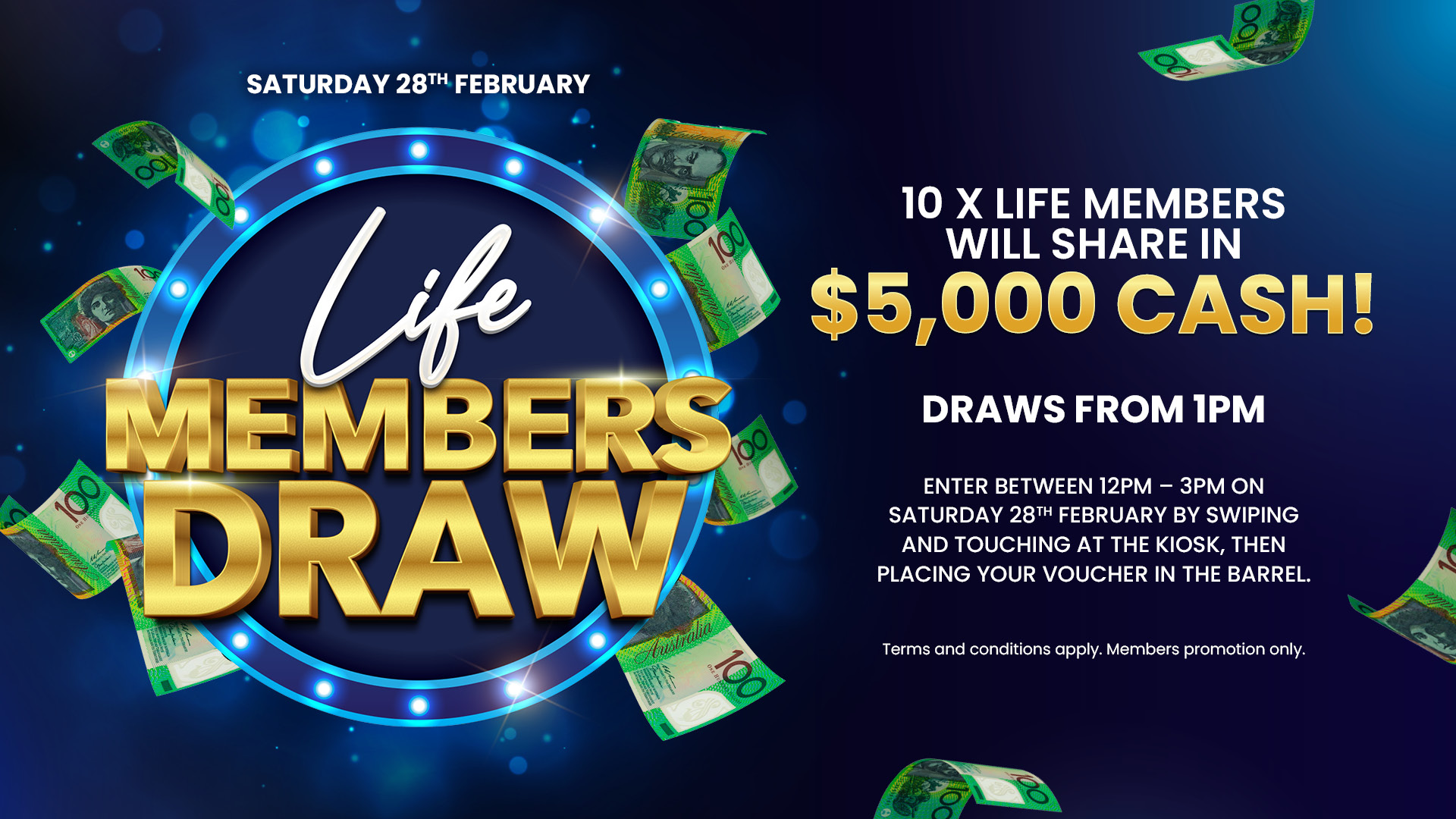 Time: From 9:30pm-12am When: EVERY Saturday Enter: Play gaming from 8:30pm with your membership card to enter Location: Gaming Lounge Extra Details: Select a card from the prize board to win a share in up to $600 CASH |
